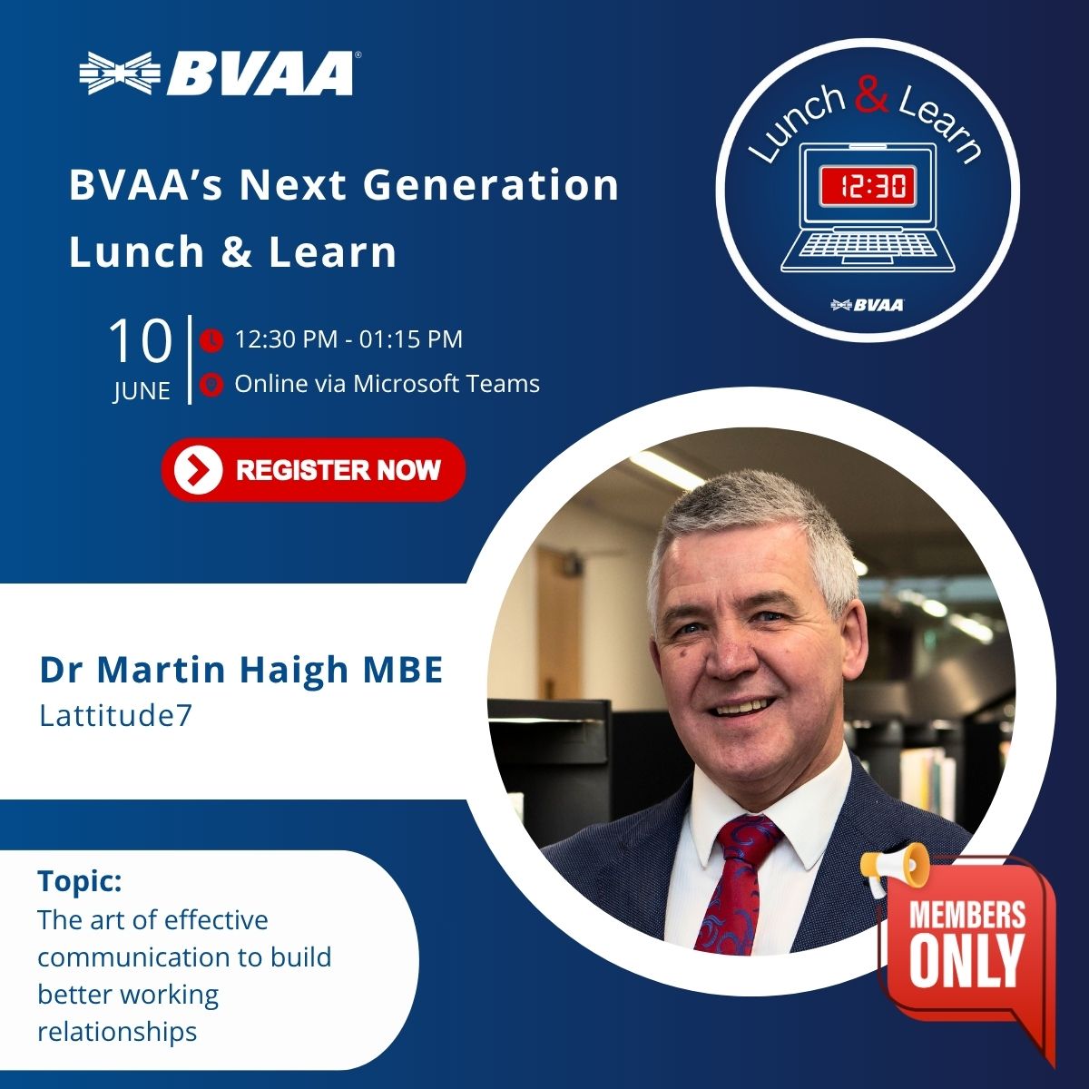 Join us for the next 'Lunch & Learn' event in the BVAA's Next Generation programme of lunchtime activities.